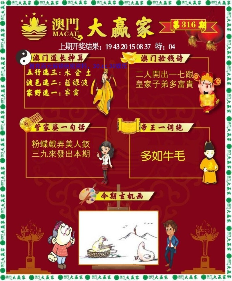 | 320期大赢家网【男女四肖八码】开:發00准 【男肖】=》【虎】【马】【龙】【狗】 【16.28.24.36.14.38.08.20】 | |